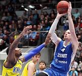 Единая лига ВТБ, полуфинал. Матч между командами "Зенит" и "Химки". Игрок команды "Зенит" Аарон Уайт (справа) во время матча.