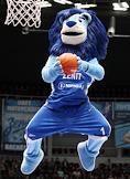 Единая лига ВТБ, полуфинал. Матч между командами "Зенит" и "Химки". Ростовая кукла - лев с баскетбольным мячом во время перерыва в матче.