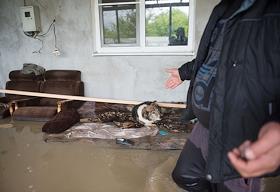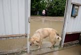 Последствия наводнения. Мужчина вытаскивает собаку из воды.