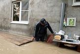 Последствия наводнения. Мужчина передвигается по затопленной улице.
