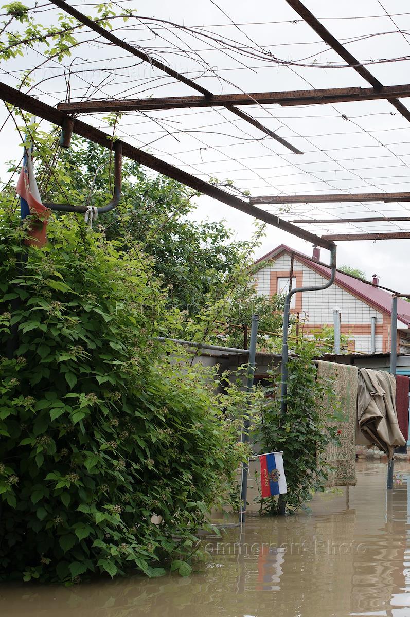 Последствия наводнения. Дворовые насаждения, затопленные водой.