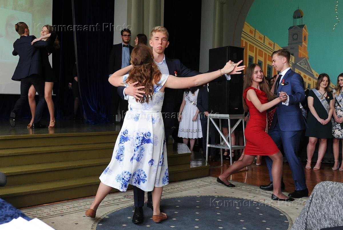Праздник последнего звонка прошел в школе с углубленным изучением испанского языка № 1252 им. Сервантеса. Выпускники во время исполнения прощального вальса.