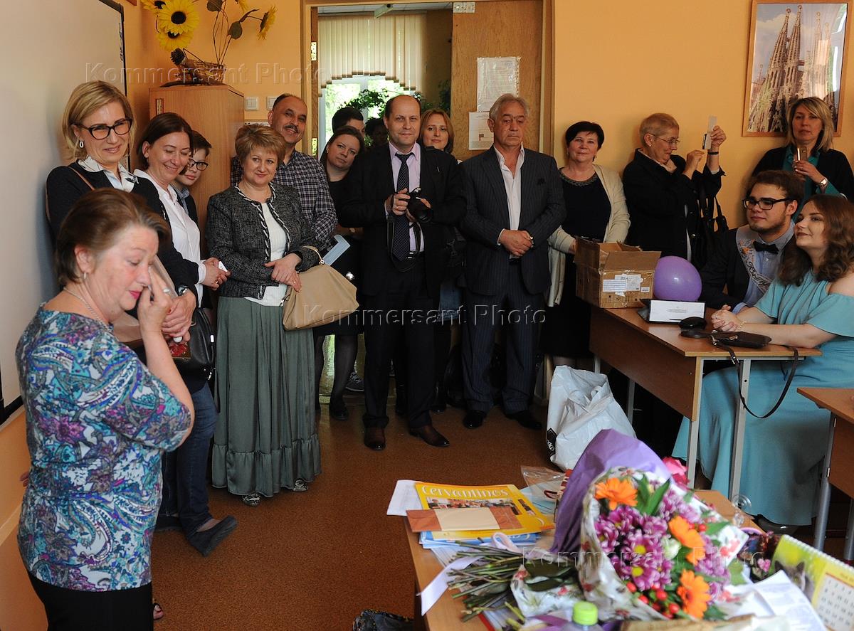 Праздник последнего звонка прошел в школе с углубленным изучением испанского языка № 1252 им. Сервантеса. Родители и выпукники на последнем уроке.