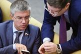 Пленарное заседание Государственной думы (ГД) России. Член комитета ГД России по транспорту и строительству Владимир Ресин (слева) во время заседания.
