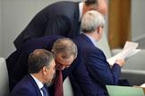 Пленарное заседание Государственной думы (ГД) России. Председатель Государственной Думы (ГД) России Вячеслав Володин (слева) и заместитель председателя ГД России Сергей Неверов (второй слева) во время заседания.