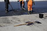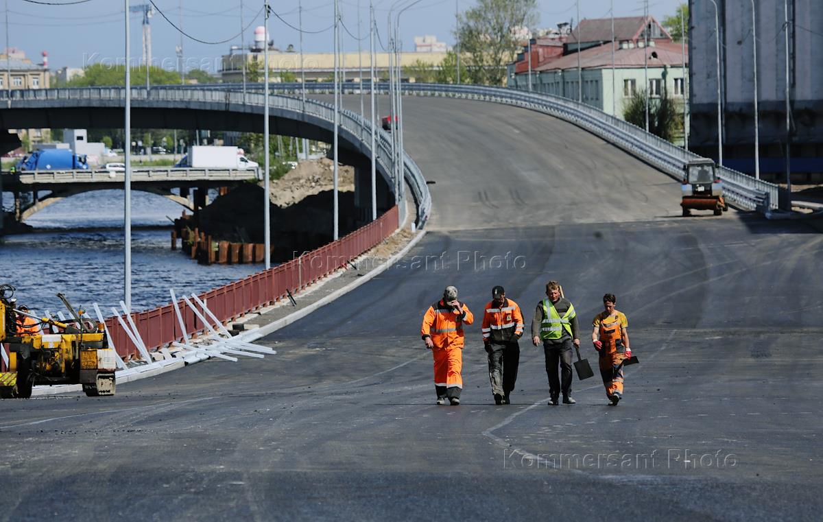 Завершение работ по устройству дороги на южной стороне Обводного канала. Дорожные рабочие.