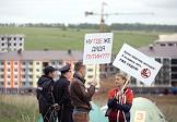 Митинг обманутых дольщиков ЖК "Smart City" прошел в поселке Новинки. Участники с маленьким ребенком и девушка с плакатом "мат.капитал украли у маленьких детей" во время митинга.
