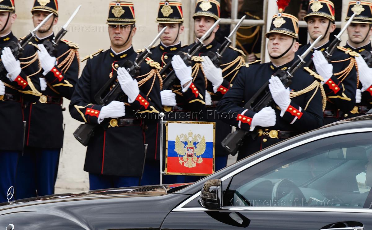 Визит президента России Владимира Путина во Францию. Торжественная встреча президента России Владимира Путина во дворце Большой Трианон замка Версаль, где пройдет выставка, подготовленная Государственным Эрмитажем к 300-летию поездки императора России Петра I во Францию.