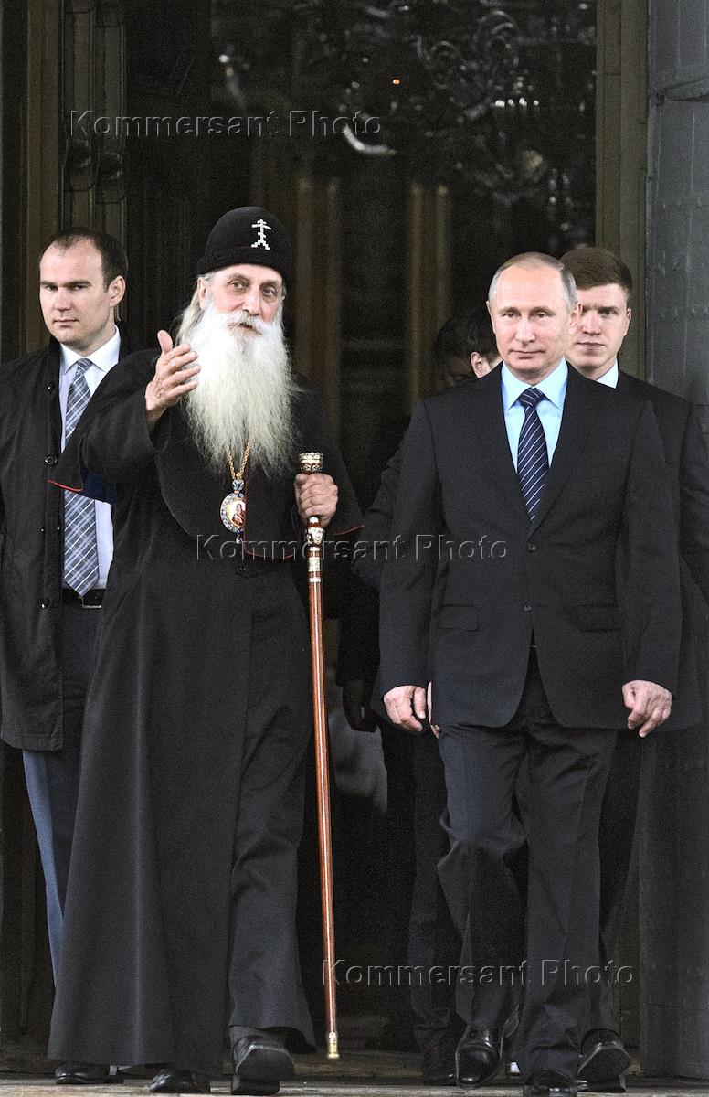 Президент России Владимир Путин посетил Рогожский духовный центр Русской Православной Старообрядческой Церкви. Президент России Владимир Путин (справа) и первоиерарх Русской Православной Старообрядческой Церкви (РПСЦ) митрополит Корнилий (слева) во время посещения президентом Рогожского духовного центра.