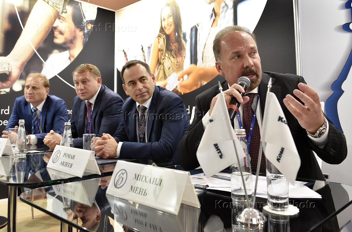 ХХI Петербургский международный экономический форум (ПМЭФ- 2017). День первый. ИД "Коммерсантъ" на ПМЭФ-2017. Министр строительства и жилищно-коммунального хозяйства России Михаил Мень (справа) и совладелец Московского кредитного банка (МКБ) Роман Авдеев (в центре) во время сессии на тему "Векторы развития городов России: инвестиции, инновации, инфраструктура".