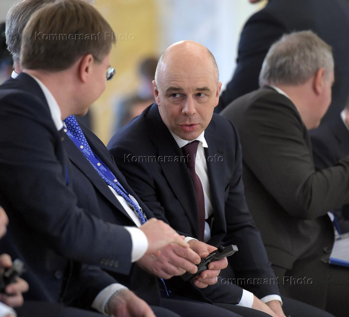 Рабочая поездка президента России Владимира Путина в Санкт-Петербург. ХХI Петербургский международный экономический форум (ПМЭФ) 2017. Министр финансов России Антон Силуанов на церемонии подписания совместных российско-индийских документов в Константиновском дворце в Стрельне.