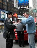 Жанровая фотография. Мужчина разговаривает с полицейским на Таймс Сквер.