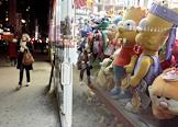 Жанровая фотография. Витрина магазина с мягкими игрушками. Персонажи мультфильма "Симсоны".