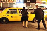 Жанровая фотография. Мужчина сажает женщину в такси.