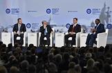 ХХI Петербургский международный экономический форум (ПМЭФ) 2017. День первый. Губернатор Санкт-Петербурга Георгий Полтавченко (в центре), заместитель председателя Государственной думы России Александр Жуков (слева) и министр России по вопросам Открытого правительства Михаил Абызов (справа) во время церемонии открытия форума.