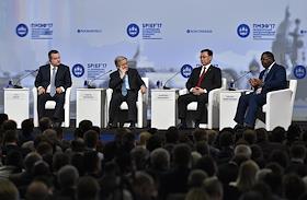ХХI Петербургский международный экономический форум (ПМЭФ) 2017. День первый. Генеральный секретарь Организации Объединенных Наций Антониу Гутерриш во время церемонии открытия форума.