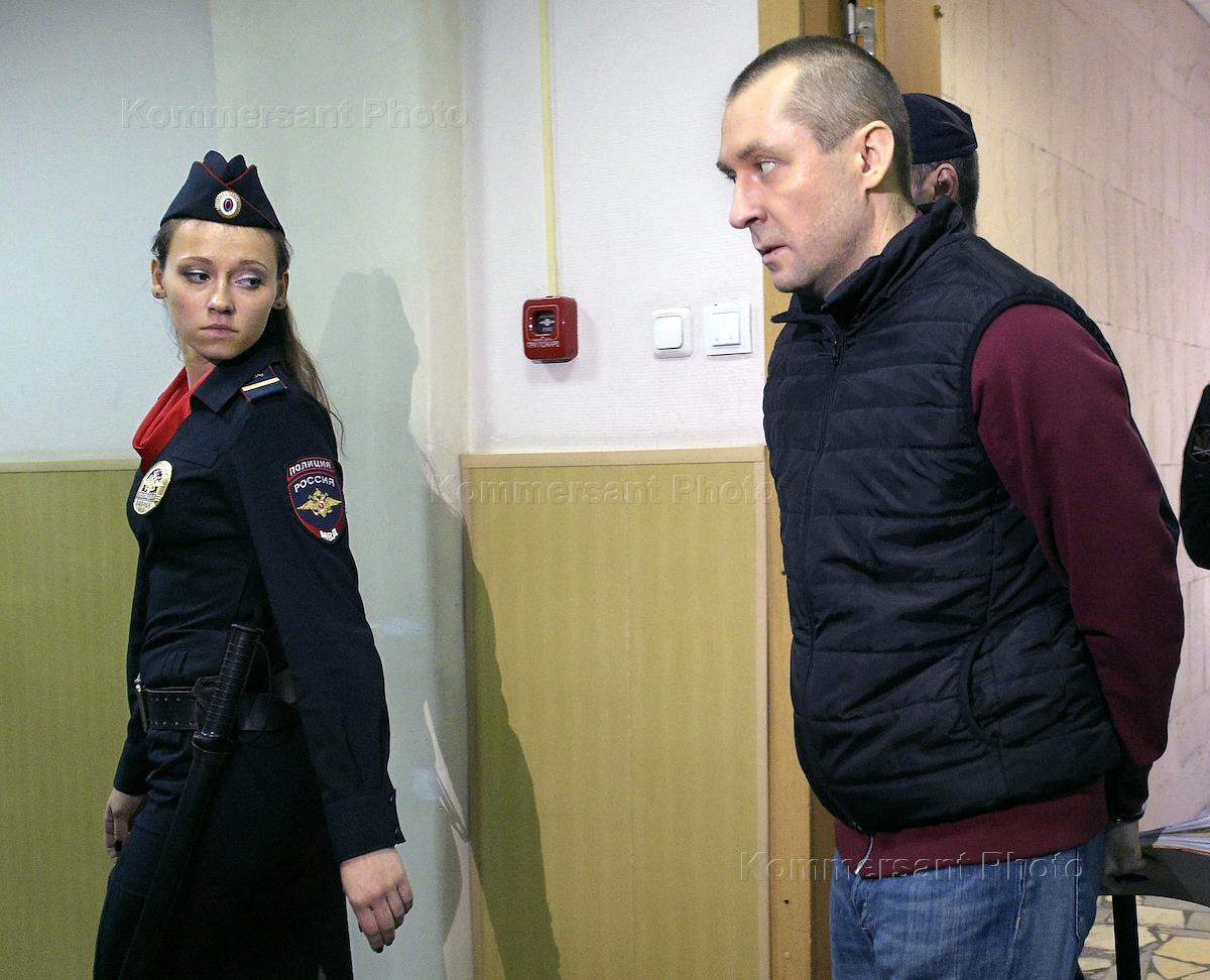 Рассмотрение ходатайства следствия о продлении срока содержания под стражей в отношении бывшего заместителя начальника управления "Т" ГУЭБиПК Дмитрия Захарченко в Басманном районном суде. Бывший заместитель начальника управления "Т" ГУЭБиПК Дмитрий Захарченко во время заседания суда.
