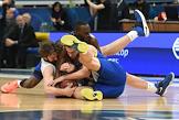 Единая лига ВТБ по баскетболу. Полуфинал. Матч между командами "Химки" (Химки) и "Зенит" (Санкт-Петербург) в Баскетбольном центре "Химки". Игроки команды "Зенит" Тревор Мбакве (слева) и Аарон Уайт (справа) во время матча.