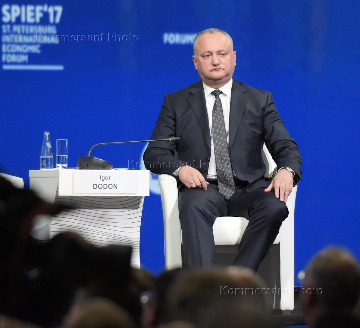 ХХI Петербургский международный экономический форум (ПМЭФ) 2017. Президент Молдавии Игорь Додон во время пленарного заседания.