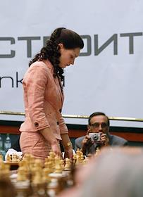 Вице-чемпион мира, действующий чемпион Европы по шахматам Александра Костенюк во время сеанса одновременной игры в шахматы. Сеанс прошел в рамках открытого шахматного матча на кубок "Судостроительного банка" в Культурном центре Главного управления дипломатического корпуса (УПДК) Министерства иностранных дел (МИД) России.