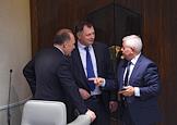 Парламентские слушания на тему "Создание правовых условий для обеспечения жителей города Москвы комфортным и современным жильем как ключевой элемент реновации жилищного фонда" в Государственно думе России. Слева направо: мэр Москвы Сергей Собянин, заместитель председателя правительства России Дмитрий Козак и министр строительства и жилищно-коммунального хозяйства России Александр Мень во время слушаний.