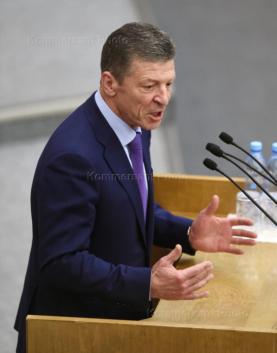 Парламентские слушания на тему "Создание правовых условий для обеспечения жителей города Москвы комфортным и современным жильем как ключевой элемент реновации жилищного фонда" в Государственно думе России. Заместитель председателя правительства России Дмитрий Козак во время слушаний.