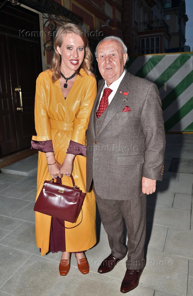 Закрытый показ проекта Сергея Шнурова "Ретроспектива Брендреализма". Телеведущая, главный редактор русской версии журнала L'Officiel Ксения Собчак (слева) и президент Российской академии художеств Зураб Церетели (справа) перед открытием экспозиции в Московском музее современного искусства (ММСИ).