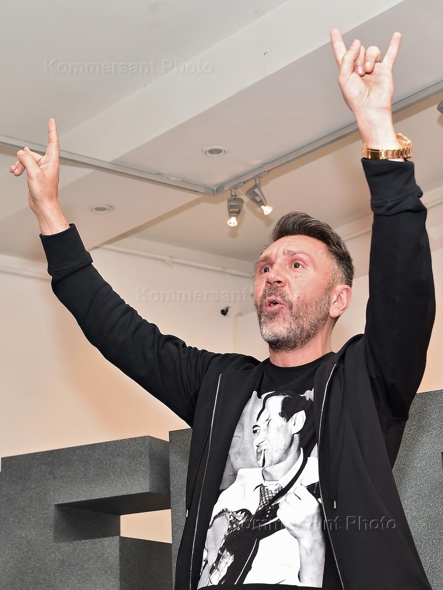 Закрытый показ проекта Сергея Шнурова "Ретроспектива Брендреализма". Лидер группировки "Ленинград" Сергей Шнуров во время открытия экспозиции в Московском музее современного искусства (ММСИ).