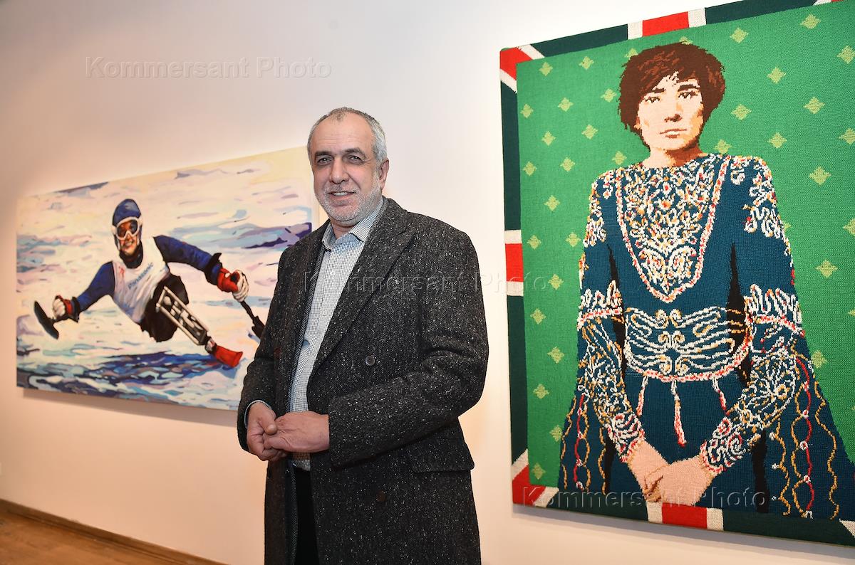 Закрытый показ проекта лидера группы "Ленинград" Сергея Шнурова "Ретроспектива Брендреализма" в Московском музее современного искусства (ММСИ). Директор Центрального музея древнерусского искусства имени Андрея Рублева Михаил Миндлин на показе.