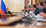 Заседание правительства России. Председатель правительства России Дмитрий Медведев (в центре) во время заседания.