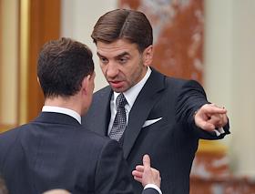 Заседание правительства России. Заместитель председателя правительства России Аркадий Дворкович (слева) и министр связи и массовых коммуникаций России Николай Никифоров (справа) перед началом заседания.