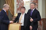 Заседание правительства России. Слева анпарво: министр финансов России Антон Силуанов, министр труда и социальной защиты России Максим Топилин и министр сельского хозяйства России Александр Ткачев перед началом заседания.