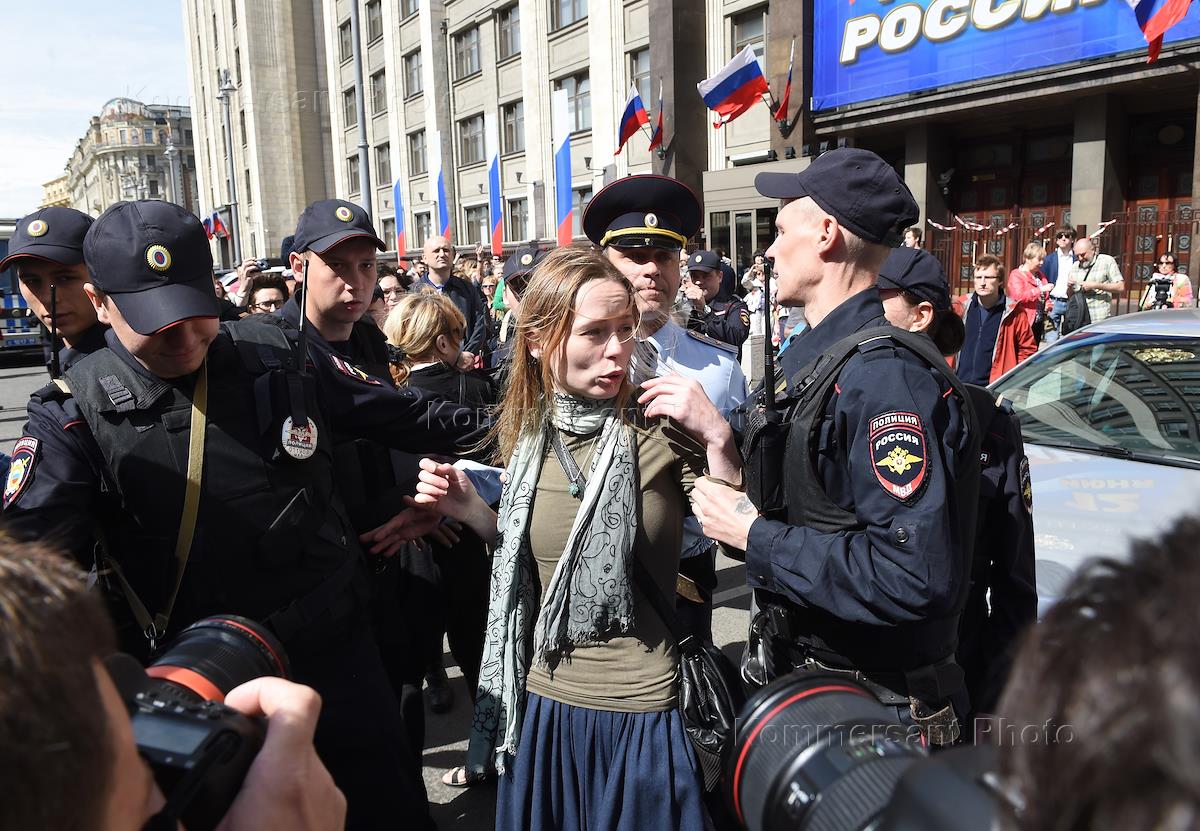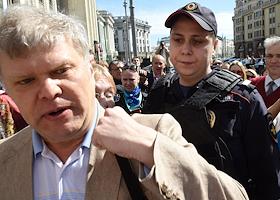 Задержание участников акции протеста против программы реновации пятиэтажек у здания Государственной думы России.