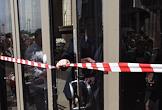 Виды Москвы. Уборщица моет вывеску на здании Государственной думы России.