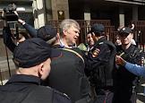 Акция протеста против программы реновации пятиэтажек прошла у здания Государственной думы России. Председатель Московского регионального отделения партии "Яблоко" Сергей Митрохин (в центре) во время акции.