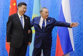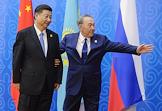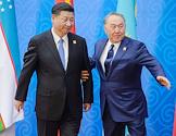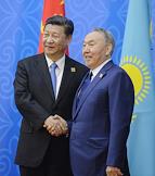 Президент Казахстана Нурсултан Назарбаев (справа) и председатель КНР Си Цзиньпин (слева) перед заседанием совета глав государств - членов Шанхайской организации сотрудничества (ШОС).