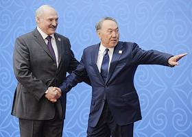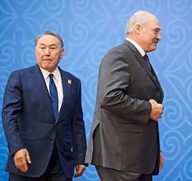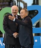 Президент Белоруссии Александр Лукашенко (слева) и президент Казахстана Нурсултан Назарбаев (справа) перед заседанием совета глав государств - членов Шанхайской организации сотрудничества (ШОС).