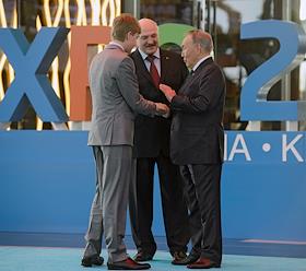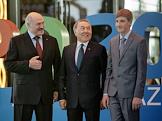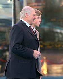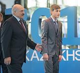 Рабочая поездка президента Росси Владимира Путина в Астану. Церемония открытия международной специализированной выставки "Астана ЭКСПО 2017". Президент Белоруссии Александр Лукашенко (в центре) с сыном Николаем (слева) перед началом церемонии.