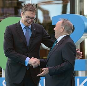 Церемония открытия международной специализированной выставки "Астана ЭКСПО 2017". Президент Сербии Александр Вучич перед началом церемонии.