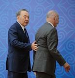 Президент Казахстана Нурсултан Назарбаев (справа) перед заседанием совета глав государств - членов Шанхайской организации сотрудничества (ШОС).