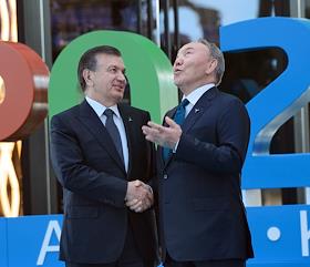 Церемония открытия международной специализированной выставки "Астана ЭКСПО 2017". Президент Казахстана Нурсултан Назарбаев (справа) и президент Узбекистана Шавкат Мирзиеев (слева) перед началом церемонии.