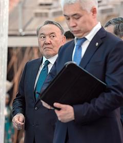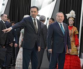 Церемония открытия международной специализированной выставки "Астана ЭКСПО 2017". Президент Казахстана Нурсултан Назарбаев (справа) и премьер-министр Казахстана Бакытжан Сагинтаев (слева) перед началом церемонии.