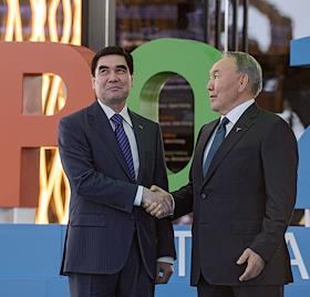 Церемония открытия международной специализированной выставки "Астана ЭКСПО 2017". Президент Казахстана Нурсултан Назарбаев (справа) и президент Туркмении Гурбангулы Бердымухамедов (слева) перед началом церемонии.