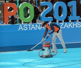 Церемония открытия международной специализированной выставки "Астана ЭКСПО 2017". Жанровая фотография. Подготовка к церемонии. Уборка территории.