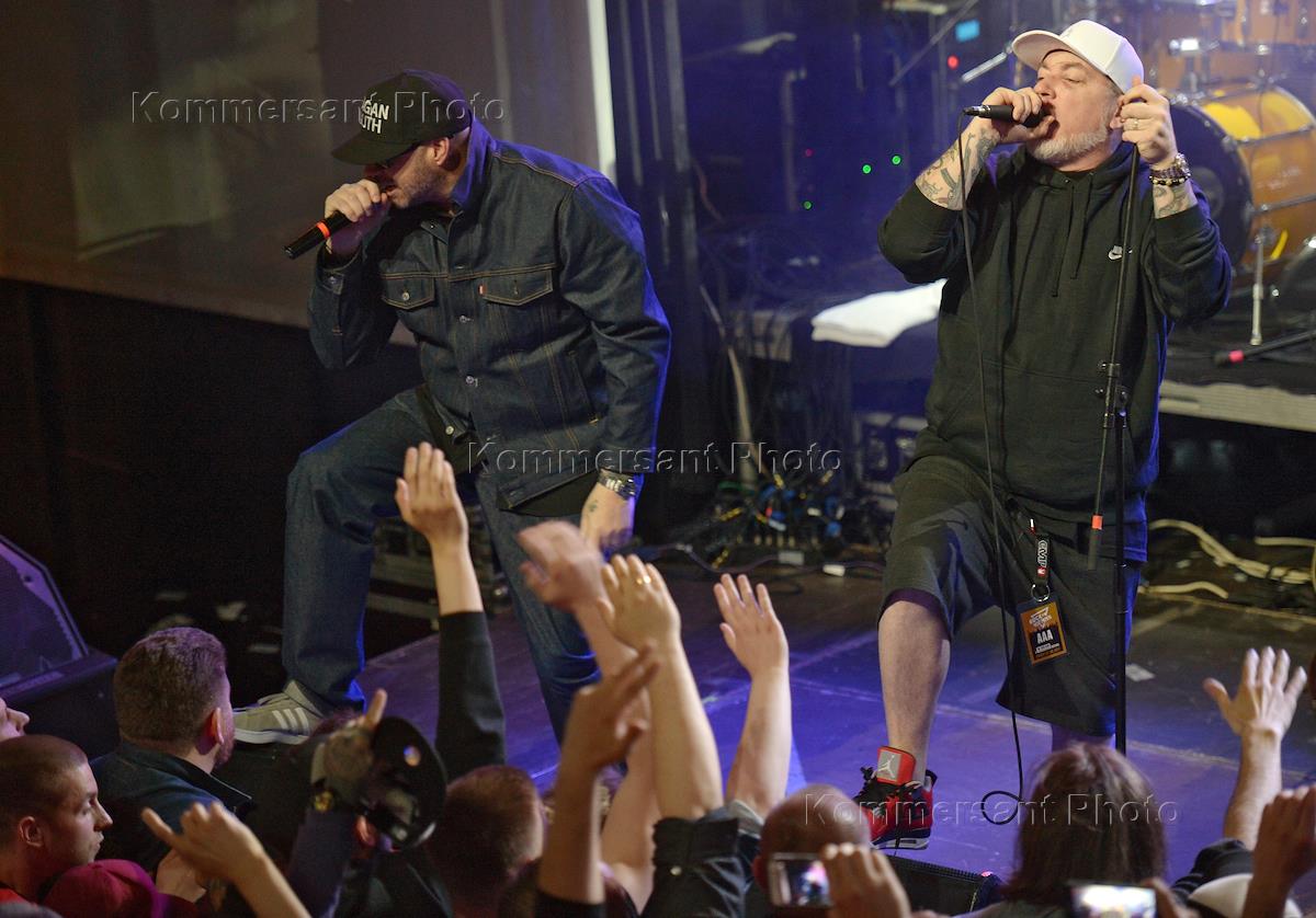 Концерт ирландской хип-хоп группы House of Pain на сцене клуба Gipsy. Солисты группы Эверласт (слева) и Дэнни Бой (справа) во время концерта.