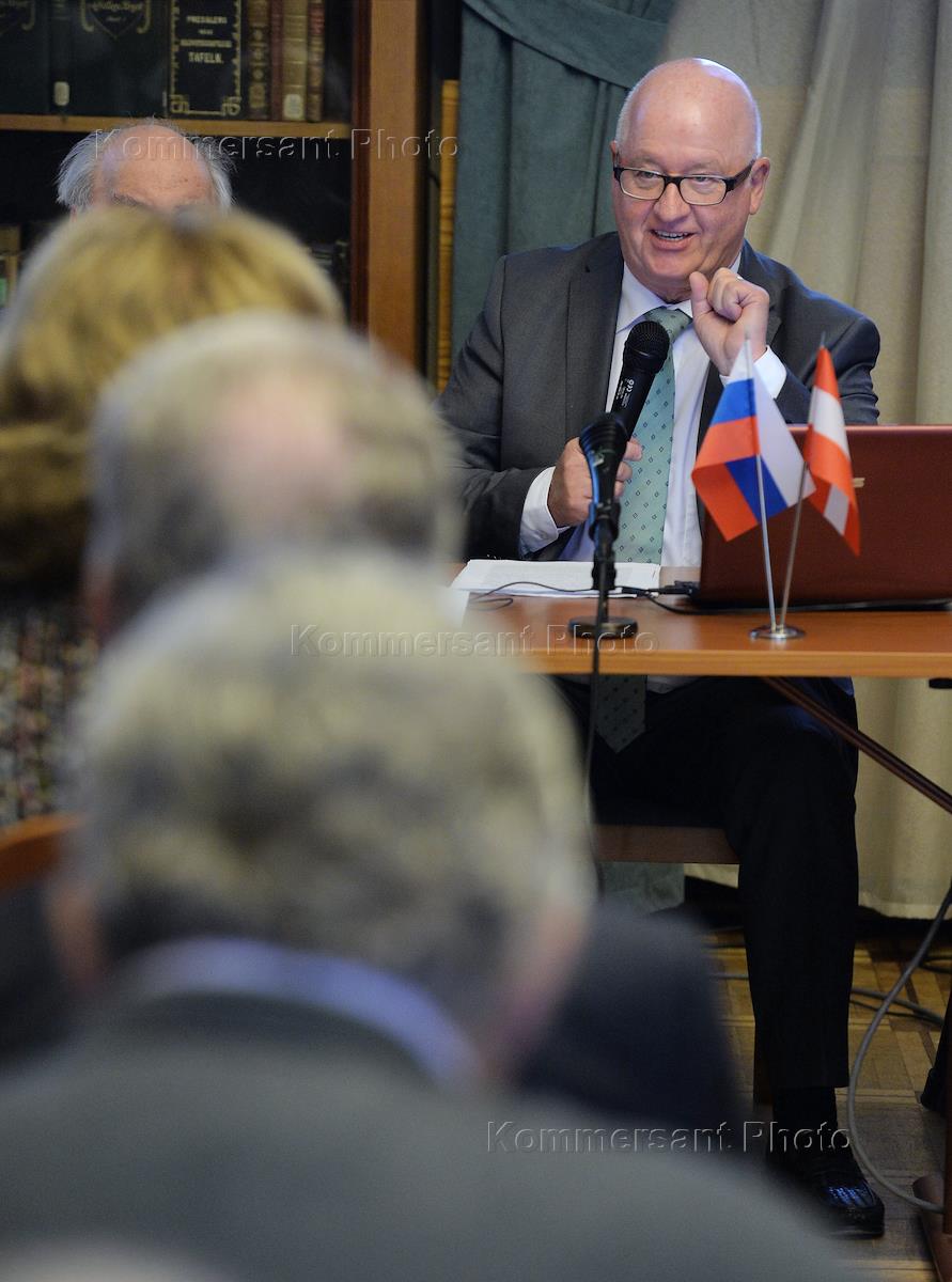 Российско-австрийский симпозиум "Сигизмунд Герберштейн: дипломат, писатель, путешественник" прошел в Всероссийской государственной библиотеке иностранной литературы имени М.И.Рудомино. Сопредседатель Российско-австрийской комиссии историков, директор Института социальной и экономической истории Университета Граца Штефан Карнер во время симпозиума.