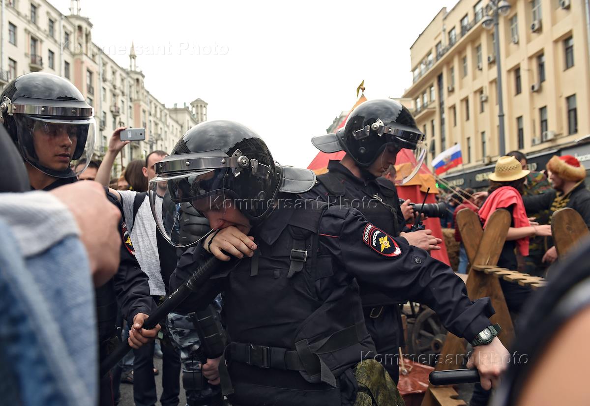 Anti-corruption rally on the application of "Foundation for Combating Corruption" director Roman Rubanov was held on Tverskaya Street. Law enforcement officers during the protest.