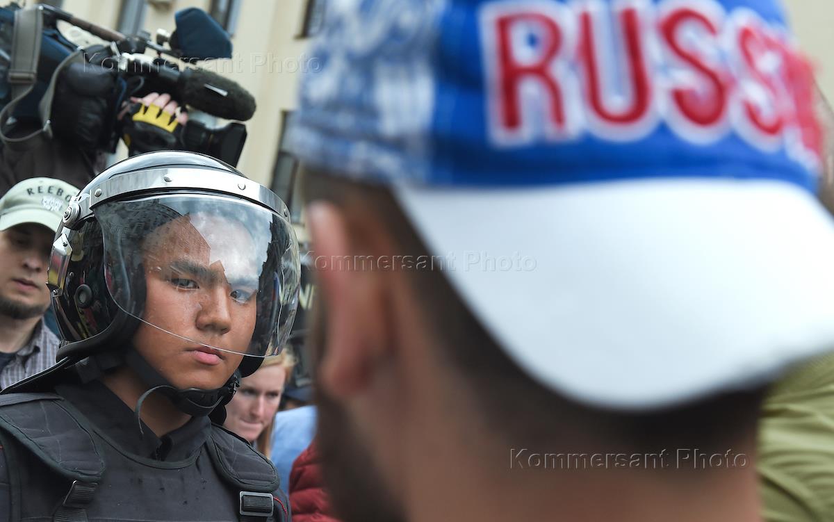 Anti-corruption rally on the application of "Foundation for Combating Corruption" director Roman Rubanov was held on Tverskaya Street. Law enforcement officers during the protest.