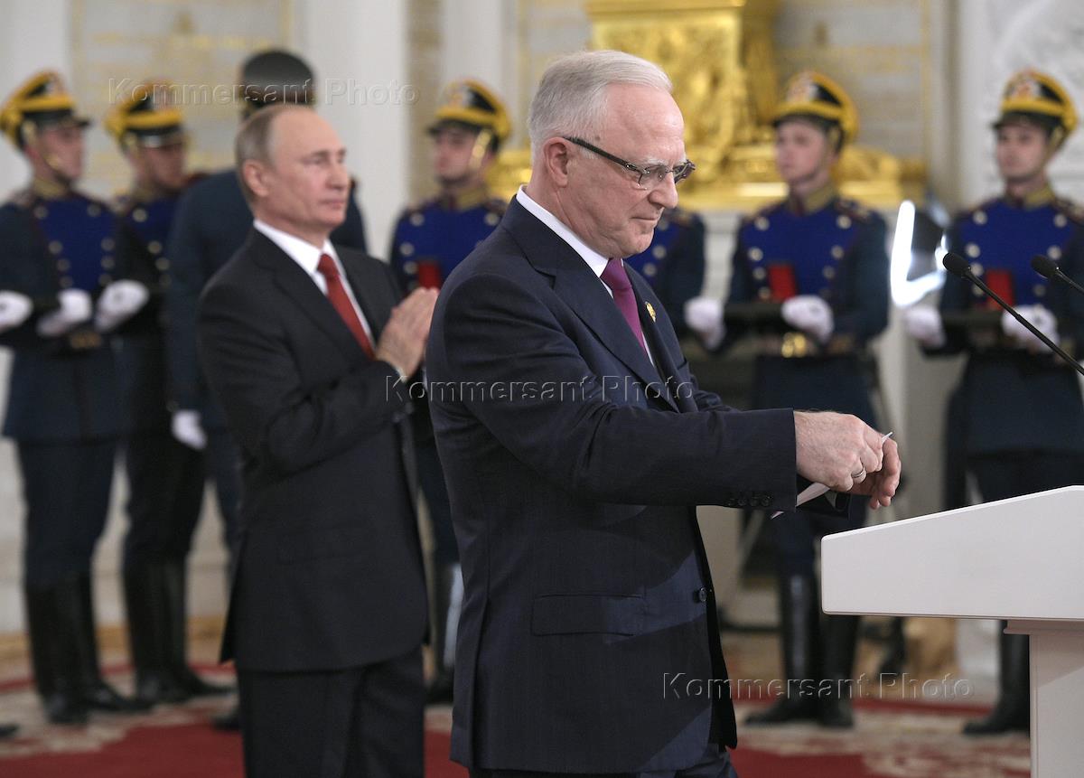 Solemn ceremony of presentation by Russian President Vladimir Putin of the 2016 State Prize for outstanding achievements in science and technology, literature and art and humanitarian activities in the Kremlin. Rashid Sunyaev, head of the laboratory for theoretical astrophysics and scientific support of the Spektr-Roentgen-Gamma orbital observatory project, of the High Energy Astrophysics Department of the Space Research Institute, Russian Academy of Sciences, during a ceremony.