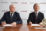 Генеральный директор угледобывающей компании "Колмар" Сергей Цивилев (слева) во время подписания Соглашения о стратегическом партнерстве российской угледобывающей компании "Колмар" и китайской сталелитейной компанией Baosteel.